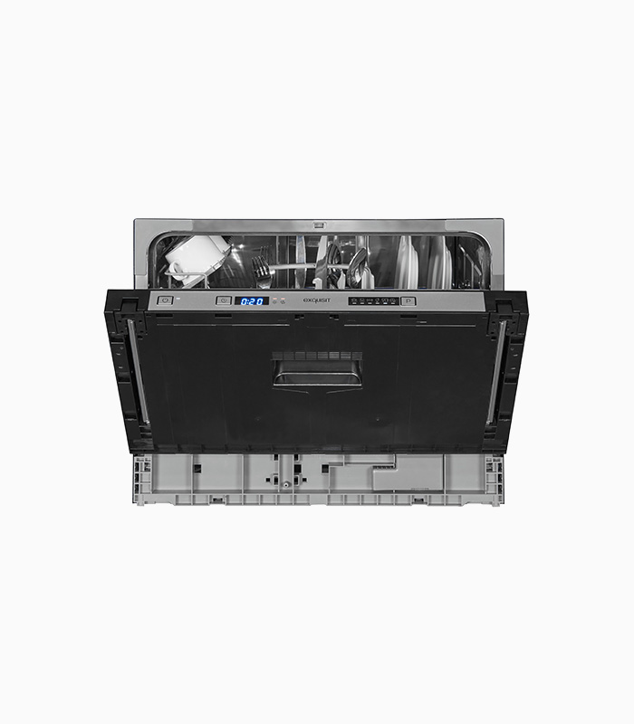 Geschirrspüler, Einbaugerät, Vollintegriert, 6 Maßgedecke, 6 Programme, LCD Display, Startzeitvorwahl, Salzmangelanzeige, Wasserverbrauch: 6,5 L/Zyklus, EEK: F, Schwarz