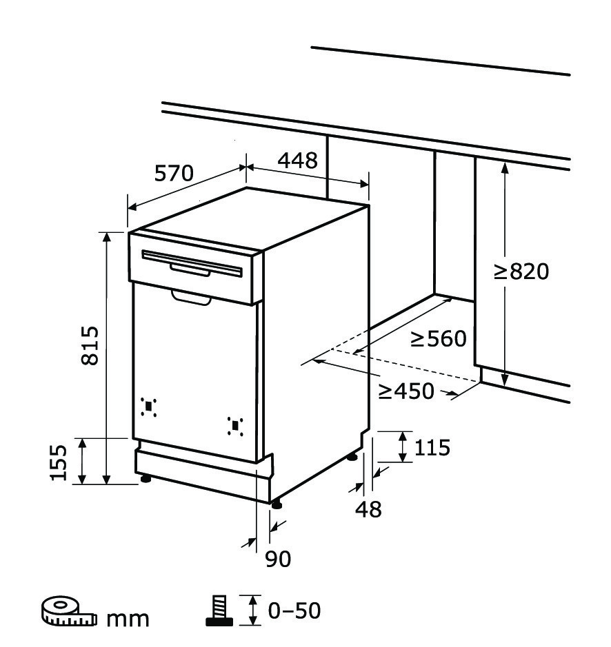 Geschirrspüler, Einbaugerät, Teilintegriert, 10 Maßgedecke, 6 Programme, Startzeitvorwahl, Salzmangelanzeige, Wasserverbrauch: 9,0 L/Zyklus, EEK: D, Inox