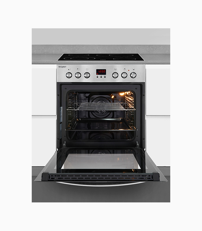 Set aus Einbaubackofen und Glaskeramik-Kochfeld mit Aluminium Rahmen, Bräterzone und Zweikreiszone, Ober-/Unterhitze, Umluft, Heißluft, Timer Digital, Multifunktion, Energieregler, Backofen-Volumen: 58 l, Abmessung: 59.5 x 59.5 x 53 cm (Höhe/Breite/Tiefe), EEK: A, Inox