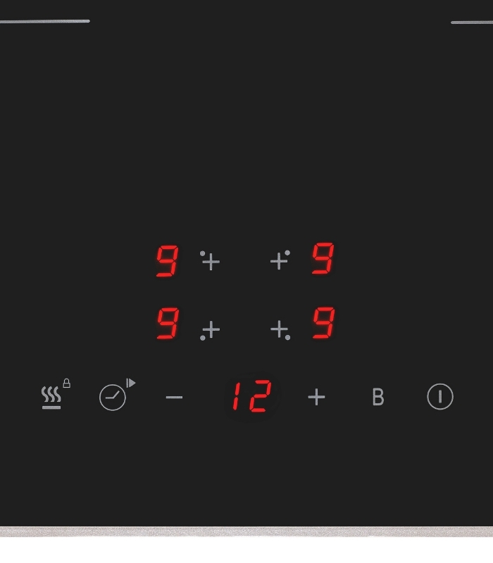 Induktionskochfeld, Einbaugerät, 4 Induktionskochzonen, Aluminium Rahmen, Touch-Control, Brückenschaltung, Timer Digital, Kindersicherung, Restwärmeanzeige, Anschlussleistung: 7.000 W