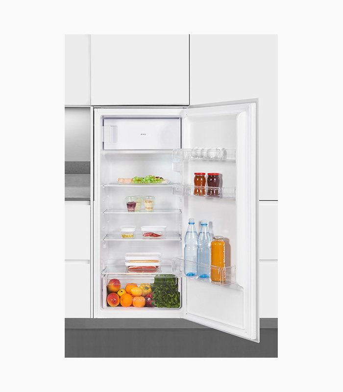Einbau Kühlschrank, 3*-Gefrierfach, Innenbeleuchtung, Temperaturregelung Elektronisch, Türanschlag wechselbar, Glasablage/verstellbar: 4 / 3, Türfächer/Flaschenregal: 3 / 1, Gefrierfächer mit Klapptür: 1, Nettoinhalt Kühlen: 167,0 l, Nettoinhalt Gefrieren: 14,0 l, EEK: F, Weiß
