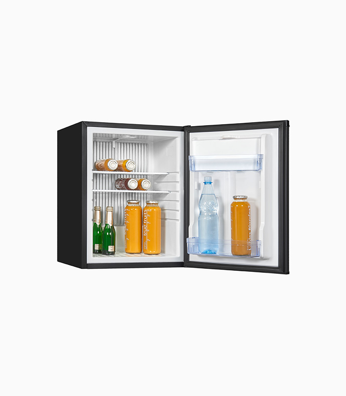 Absorber Kühlschrank, Standgerät, Innenbeleuchtung, Temperaturregelung Elektronisch, Türanschlag wechselbar, Glasablage/verstellbar: 2 / 2, Türfächer/Flaschenregal: 2 / 1, Nettoinhalt Kühlen: 43,0 l, EEK: G, Schwarz