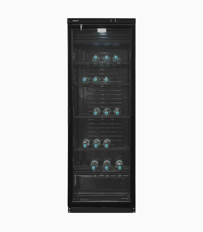 Glastürkühlschrank, Standgerät, Innenbeleuchtung, Temperaturregelung Manuell, Glasablage/verstellbar: 5 / 5, Kapazität Flaschen: 105, Schwarz
