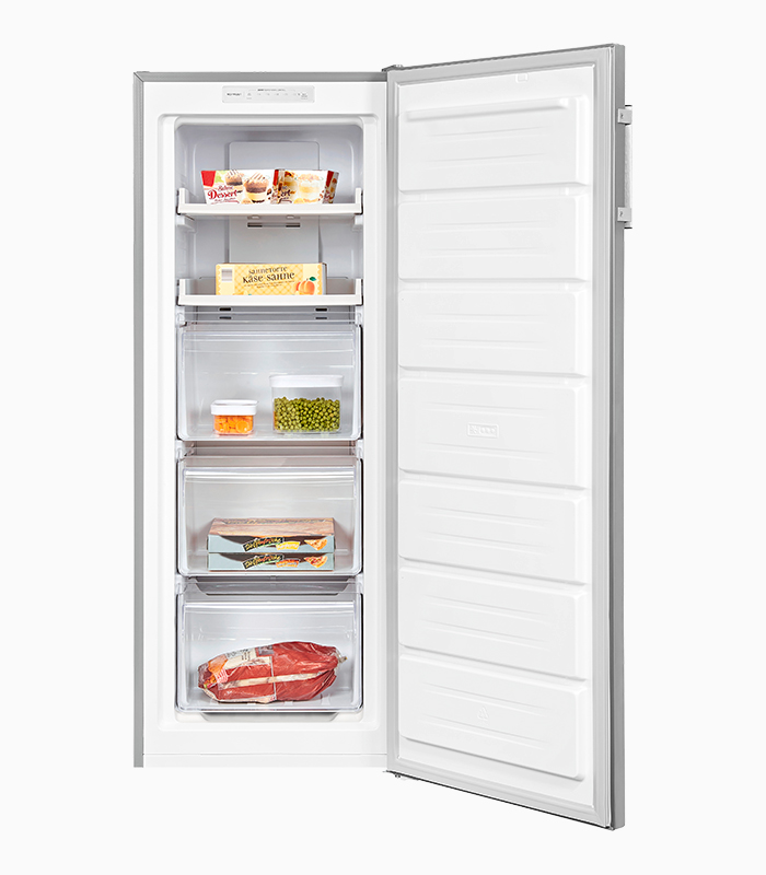 Gefrierschrank, Standgerät, 4*-Gefrierfach, No frost Gefrieren, Temperaturanzeige, Temperaturregelung Elektronisch, Türanschlag wechselbar, Gefrierschubladen: 3, Gefriertabletts: 2, Nettoinhalt Gefrieren: 161,0 l, EEK: C, Edelstahloptik