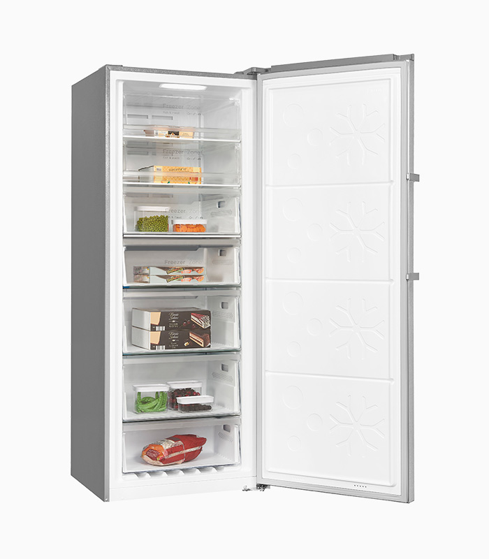 Gefrierschrank, Standgerät, 4*-Gefrierfach, No frost Gefrieren, Innenbeleuchtung, Temperaturanzeige, Temperaturregelung Elektronisch, Türanschlag wechselbar, Gefrierschubladen: 5, Gefrierfächer mit Klapptür: 2, Nettoinhalt Gefrieren: 380,0 l, EEK: E, Edelstahloptik