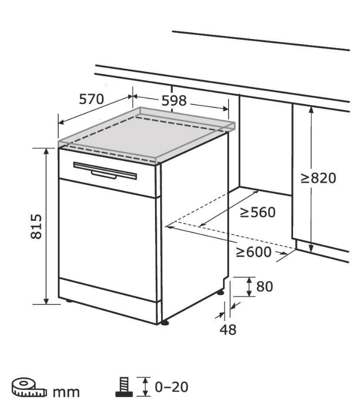 Geschirrspüler, Standgerät, Unterbaufähig, 12 Maßgedecke, 6 Programme, LED Display, Startzeitvorwahl, Salzmangelanzeige, Wasserverbrauch: 11,0 L/Zyklus, EEK: E, Weiß