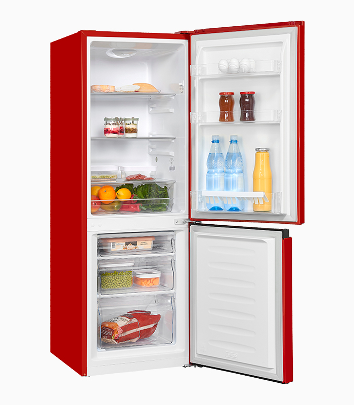 Kühl-Gefrierkombination, Standgerät, 4*-Gefrierfach, Innenbeleuchtung, Temperaturregelung Manuell, Türanschlag wechselbar, Glasablage/verstellbar: 3 / 2, Türfächer/Flaschenregal: 3 / 1, Gefrierschubladen: 2, Gefriertabletts: 1, Nettoinhalt Kühlen: 122,0 l, Nettoinhalt Gefrieren: 53,0 l, EEK: C, Rot