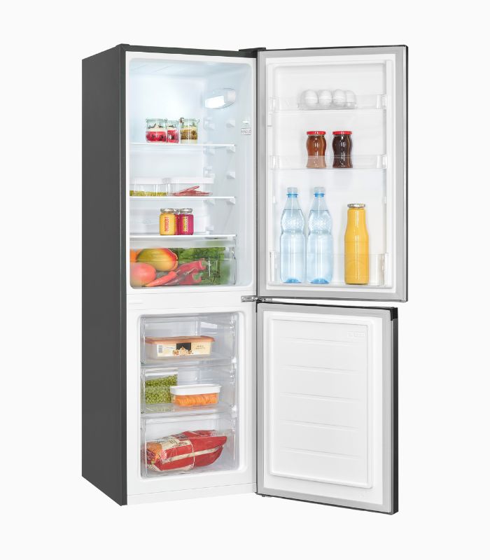 Kühl-Gefrierkombination, Standgerät, 4*-Gefrierfach, Innenbeleuchtung, Temperaturregelung Elektronisch, Türanschlag wechselbar, Glasablage/verstellbar: 3 / 2, Türfächer/Flaschenregal: 3 / 1, Gefrierschubladen: 3, Nettoinhalt Kühlen: 109,0 l, Nettoinhalt Gefrieren: 48,0 l, EEK: C, Inoxlook-az