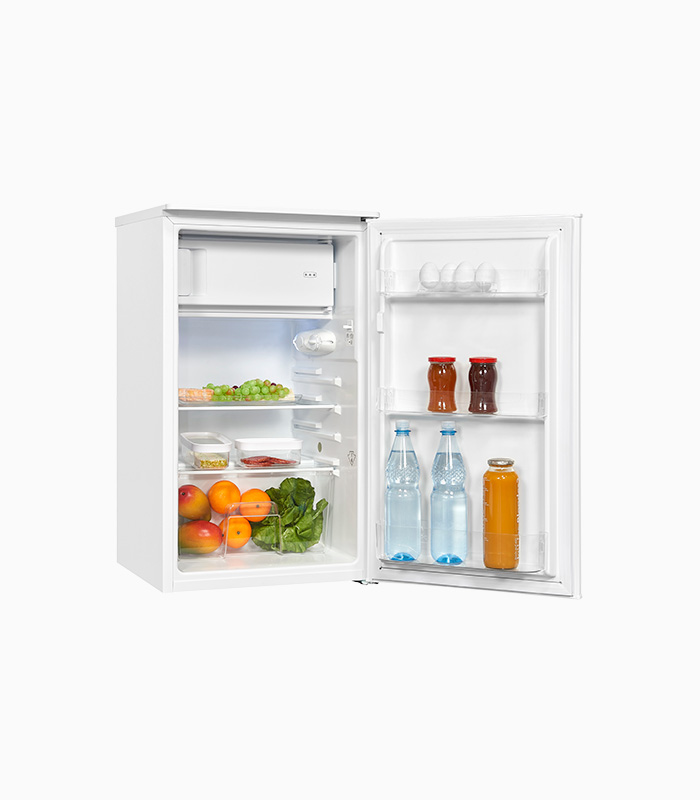Kühlschrank, Standgerät, 3*-Gefrierfach, Innenbeleuchtung, Temperaturregelung Manuell, Türanschlag wechselbar, Glasablage/verstellbar: 2 / 1, Türfächer/Flaschenregal: 3 / 1, Gefrierfächer mit Klapptür: 1, Nettoinhalt Kühlen: 85,0 l, Nettoinhalt Gefrieren: 10,0 l, EEK: E, Weiß