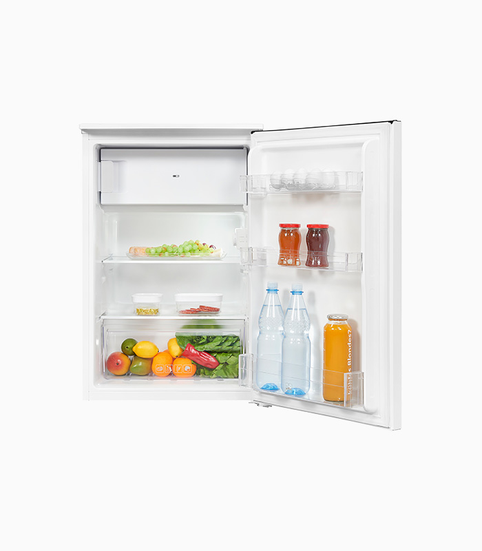 Kühlschrank, Standgerät, 4*-Gefrierfach, Innenbeleuchtung, Temperaturregelung Elektronisch, Türanschlag wechselbar, Glasablage/verstellbar: 2 / 1, Türfächer/Flaschenregal: 3 / 1, Gefrierfächer mit Klapptür: 1, Nettoinhalt Kühlen: 102,0 l, Nettoinhalt Gefrieren: 14,0 l, EEK: E, Weiß