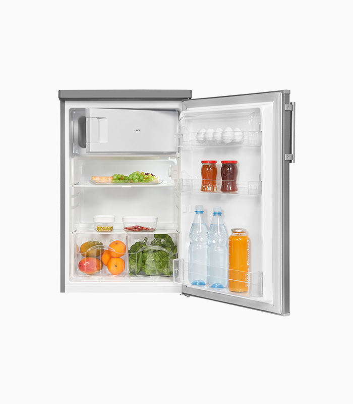 Kühlschrank, Standgerät, 4*-Gefrierfach, Innenbeleuchtung, Temperaturregelung Elektronisch, Türanschlag wechselbar, Glasablage/verstellbar: 2 / 1, Türfächer/Flaschenregal: 3 / 1, Gefrierfächer mit Klapptür: 1, Nettoinhalt Kühlen: 95,0 l, Nettoinhalt Gefrieren: 14,0 l, EEK: E, Edelstahloptik