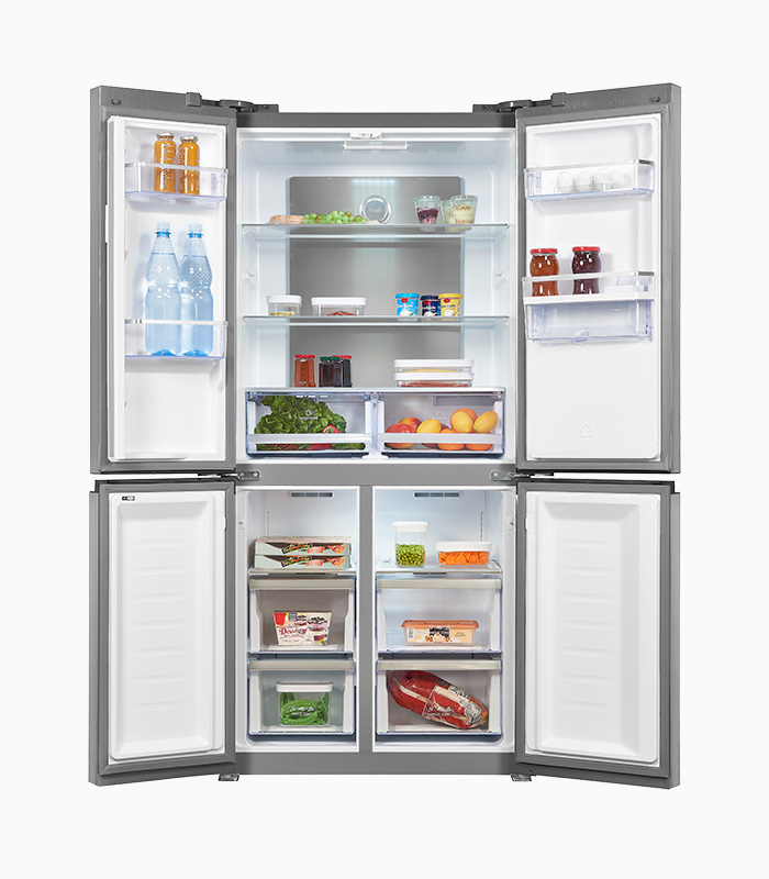 Multidoor, Standgerät, 4*-Gefrierfach, No frost Kühlen, No frost Gefrieren, Innenbeleuchtung, Temperaturanzeige, Temperaturregelung Elektronisch, Glasablage/verstellbar: 3 / 1, Türfächer/Flaschenregal: 4 / 1, Gefrierschubladen: 4, Nettoinhalt Kühlen: 284,0 l, Nettoinhalt Gefrieren: 148,0 l, EEK: E, Edelstahloptik