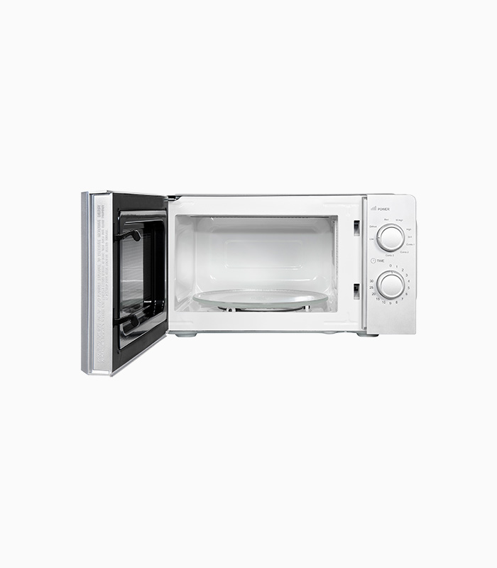Mikrowelle 700 W, Standgerät, Grill: 900 W, Volumen Garraum: 20 l, Drehteller Ø: 245,0 mm, Garraum: Lackiert, Front: Silber, Glas