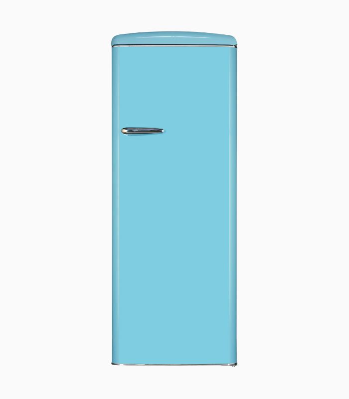 Retro Vollraumkühlschrank, Standgerät, Innenbeleuchtung, Temperaturregelung Manuell, Glasablage/verstellbar: 5 / 4, Türfächer/Flaschenregal: 4 / 1, Nettoinhalt Kühlen: 229,0 l, EEK: E, Taubenblau