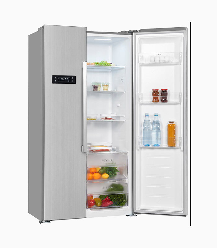 Side by Side, Standgerät, 4*-Gefrierfach, No frost Kühlen, No frost Gefrieren, Innenbeleuchtung, Temperaturanzeige, Temperaturregelung Elektronisch, Glasablage/verstellbar: 4 / 1, Türfächer/Flaschenregal: 3 / 1, Gefrierschubladen: 2, Nettoinhalt Kühlen: 291,0 l, Nettoinhalt Gefrieren: 151,0 l, EEK: F, Edelstahloptik