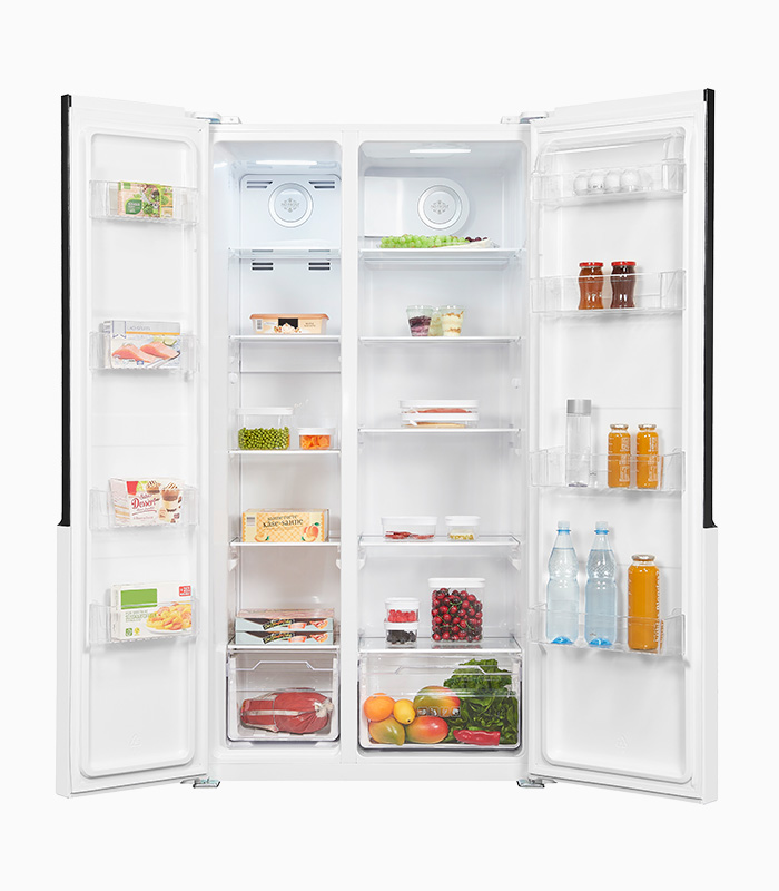 Side by Side, Standgerät, 4*-Gefrierfach, No frost Kühlen, No frost Gefrieren, Innenbeleuchtung, Temperaturanzeige, Temperaturregelung Elektronisch, Glasablage/verstellbar: 5 / 1, Türfächer/Flaschenregal: 4 / 2, Gefrierschubladen: 1, Nettoinhalt Kühlen: 347,0 l, Nettoinhalt Gefrieren: 185,0 l, EEK: E, Weiß