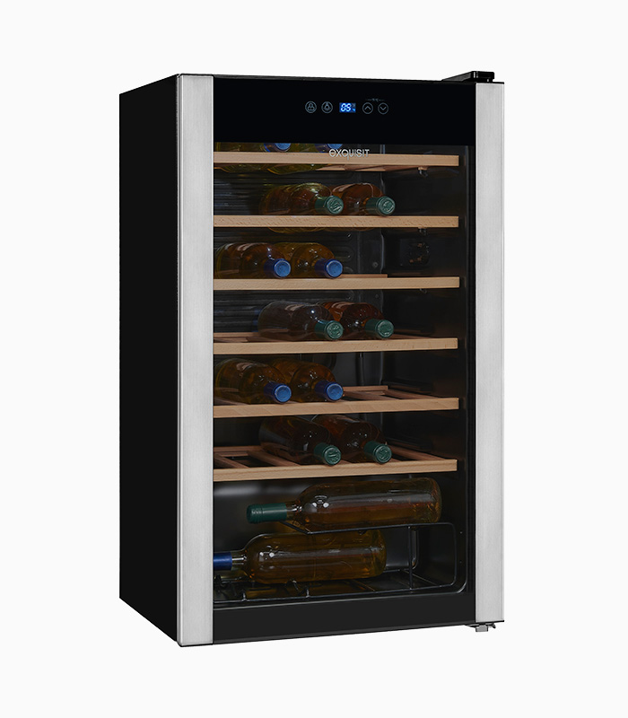 Weinkühler, Standgerät, Innenbeleuchtung, Temperaturanzeige, Temperaturregelung Elektronisch, Glasablage/verstellbar: 6 / – , Nettoinhalt Kühlen: 93,0 l, Kapazität Flaschen: 34, EEK: G, Schwarz